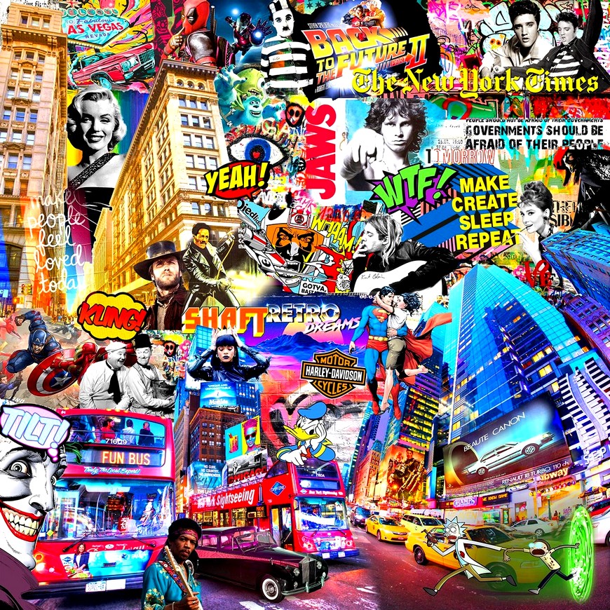 Dans le cadre de sa production artistique, l’artiste a choisi de rendre hommage à deux figures emblématiques de la scène artistique new-yorkaise : Warhol et Basquiat. Dans la capitale britannique, l’auteur s’immerge dans l’atmosphère punk et les établissements de nuit à la mode, tandis qu’à Tokyo, il souligne le mariage entre le passé et la modernité.